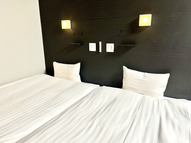 ビジネスホテルの部屋はコンパクトで、ベッドもシングルかセミダブルが一般的です。